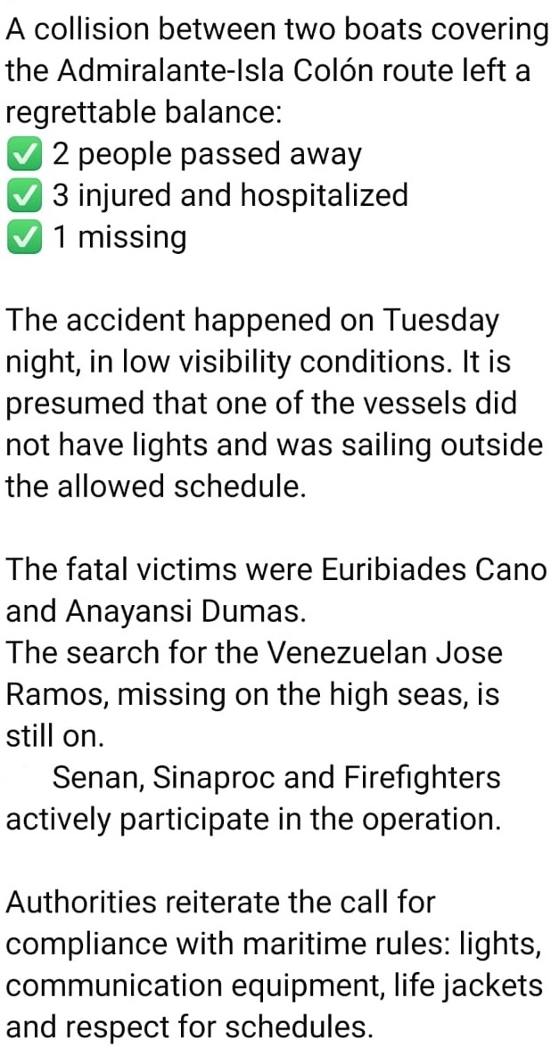 Two Boats Collided and Sunk in Bocas del Toro With Deaths Being Reported