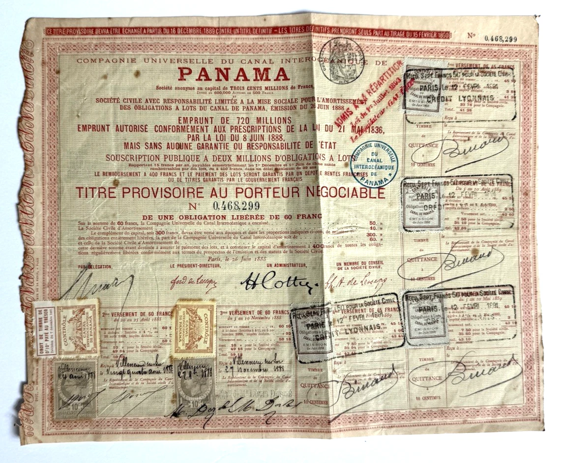 1894 Panama Canal Bonds that were Issued in Panama are pictured below.