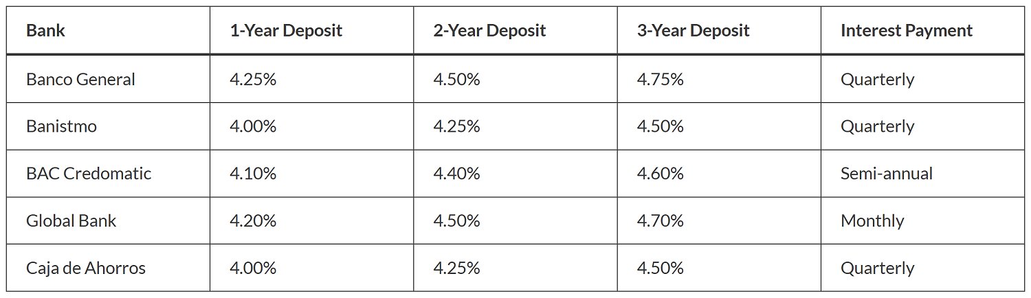 As interest rates stabilize, most Panamanian banks are offering the following average annual rates: