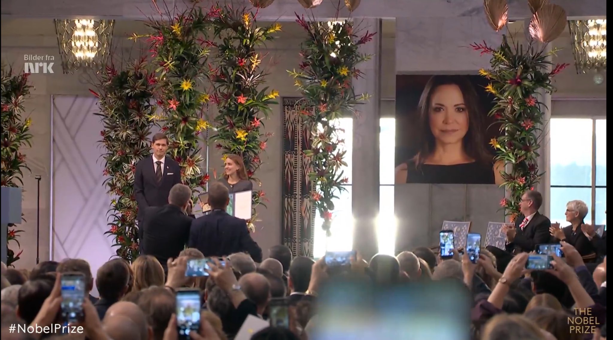 María Corina Machado is in Oslo but did not attend the Nobel Prize ceremony, according to the Nobel Institute. In Oslo Norway, the 2025 Nobel Peace Prize was awarded to Venezuelan opposition leader María Corina Machado, who was unable to attend the ceremony. Her daughter Ana Corina Sosa accepted the award on her behalf. Ana described her mother’s struggle for democracy in Venezuela. This is a story in progress. Check back throughout the day for updates.