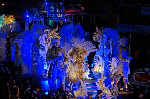 After nearly two hours of fireworks, both groups took over the park amidst an enthusiastic crowd. Calle Abajo made its entrance on a float inspired by Shangri-La, replete with white feathers and elegant details, while Calle Arriba dazzled with a float in shades of pink, with colorful plumage and figures evoking ancient Greek gods.