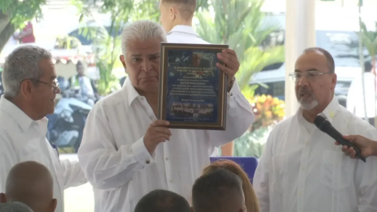 Panama President Mulino received a plaque of recognition from the January 9th Martyrs and Heroes Movement.