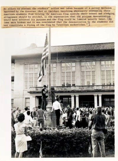 The American flag was flown daily at Balboa High School. This continued until the Chiari-Kennedy agreement between Panama and the United States established the requirement to fly both flags at 15 specific locations (later 17), but excluded schools.  On January 2, the students at Balboa High School returned from vacation, but their flag was missing. And that’s where it all began.  They organized and protested at their own school.  They raised the flag themselves and stood guard at the flagpole, making sure no one took it down.