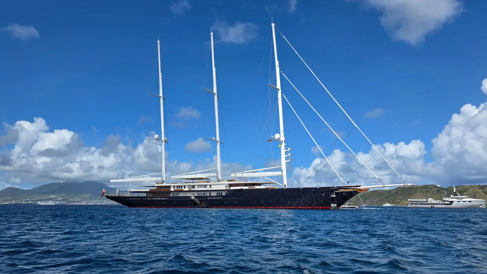 Valued at around $500 million, it measures 127 meters in length and is notable for its propulsion system using kinetic energy generated by sails —a commitment to more efficient and sustainable technologies in high-end sailing.