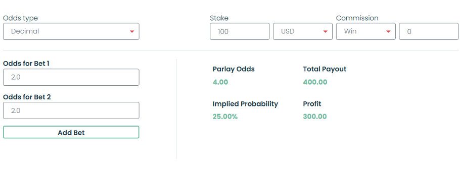 Some newbies can think that margins do not affect parlay bets, but it’s just the opposite. With the case of a parlay bet, the margins for different outcomes are multiplied. The only thing you can do is carefully calculate odds with the help of the money line parlay calculator and agree on a bookmaker’s margin.