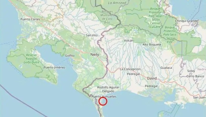 The Institute of Geosciences of the University of Panama reported the occurrence of two seismic events recorded on the afternoon of Monday, February 24, 2026 in the border region between Panama and Costa Rica, near Puerto Armuelles. The earthquake was felt very strongly in various parts of the Chiriquí province. According to the preliminary report, the first earthquake was recorded at 3:38:28 pm (local time), with a magnitude of 5.5 and a depth of 19 kilometers, located 5 kilometers south of Puerto Armuelles. Minutes later, at 3:45:04 pm, a second seismic event was detected with a magnitude of 3.4 and a depth of 15 kilometers, located 7 kilometers southeast of the same area.