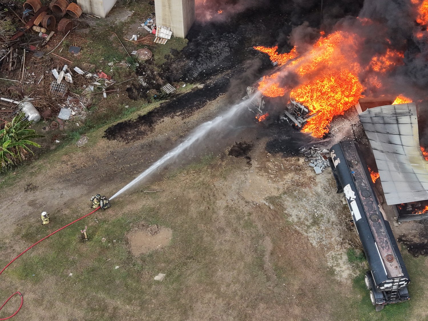 Shocking footage captured the moment the blast exploded around the bridge, showing the flames wrapping above and over the road, with drivers attempting to flee the flames. At least five emergency vehicles were working at the scene, carrying out firefighting and cooling operations. Officials later said the fire had been contained.